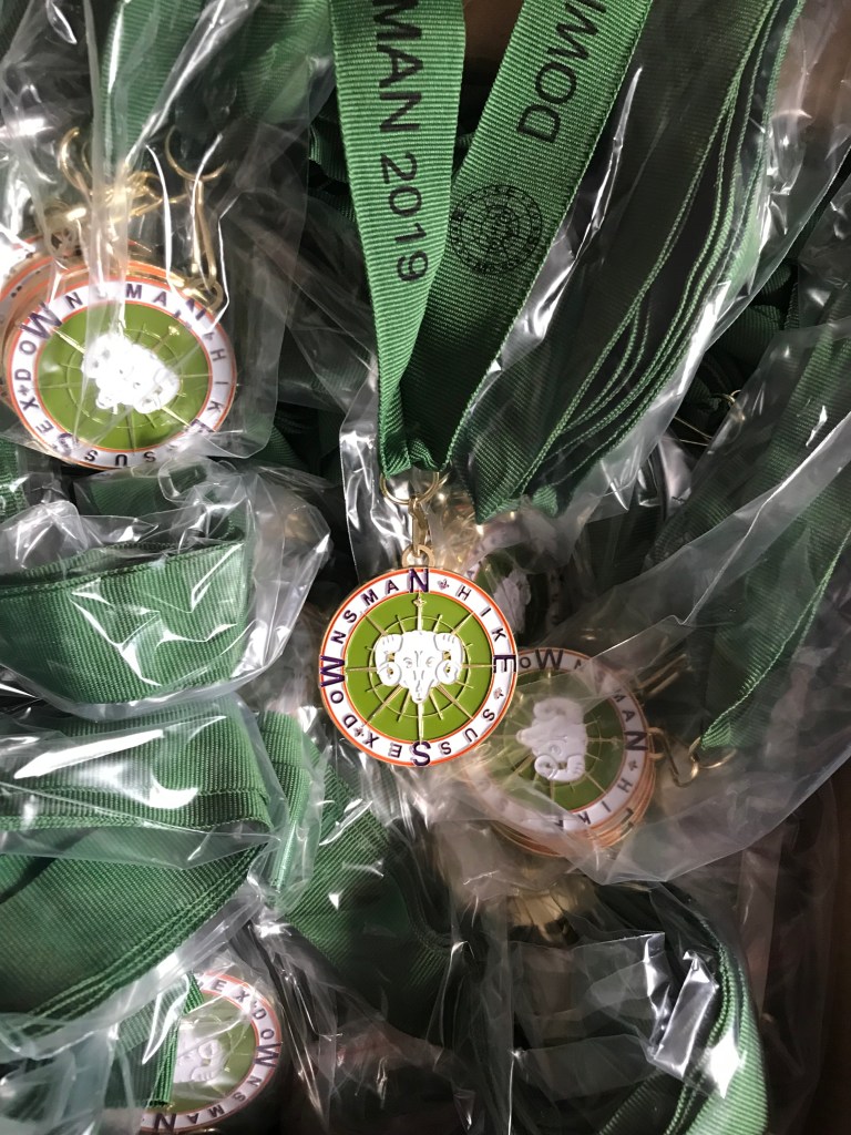 If you’ve zoomed into the photo looking for the traditional Open Class medal, then don’t worry, your eyes are not deceiving you. We will only be awarding this version. We feel that everybody who successfully completes any class of the Downsman Hike, including the Open Class, is most deserving of this mighty fine Downsman medal.