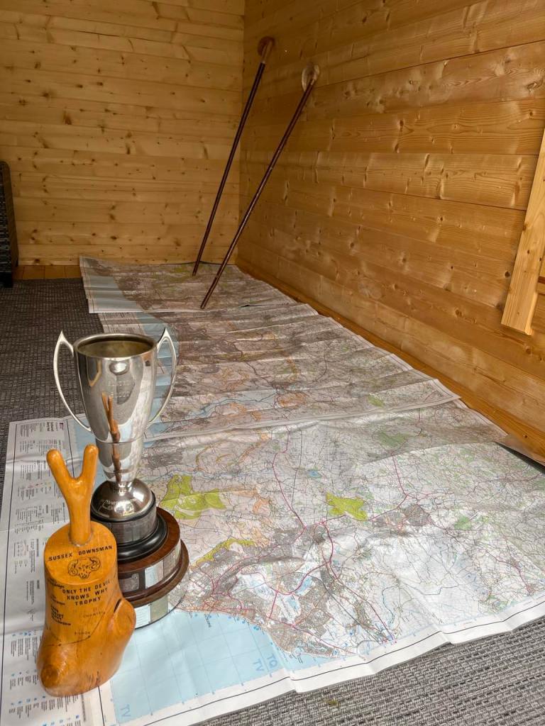 The Downsman class A & V trophies are looking for a new home. All the other Downsman trophies were lovingly collected at last years awards ceremony but these 2 were sadly left on the shelf to gather dust. To stand a chance of rehoming these splendid trophies, all you have to do is spend all summer training in readiness for the Downsman hike on 7th October. For Class A, follow the South Downs Way from the walking stick at the back of the photo to the trophies or from the nearest walking stick for Class V. So is anyone up for the challenge this year?